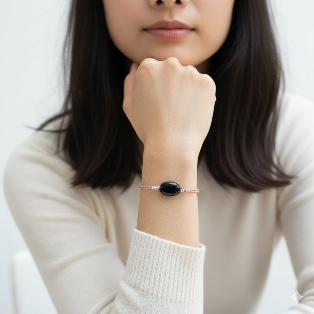 Black Onyx Pink Silk Cord Adjustable Bracelet