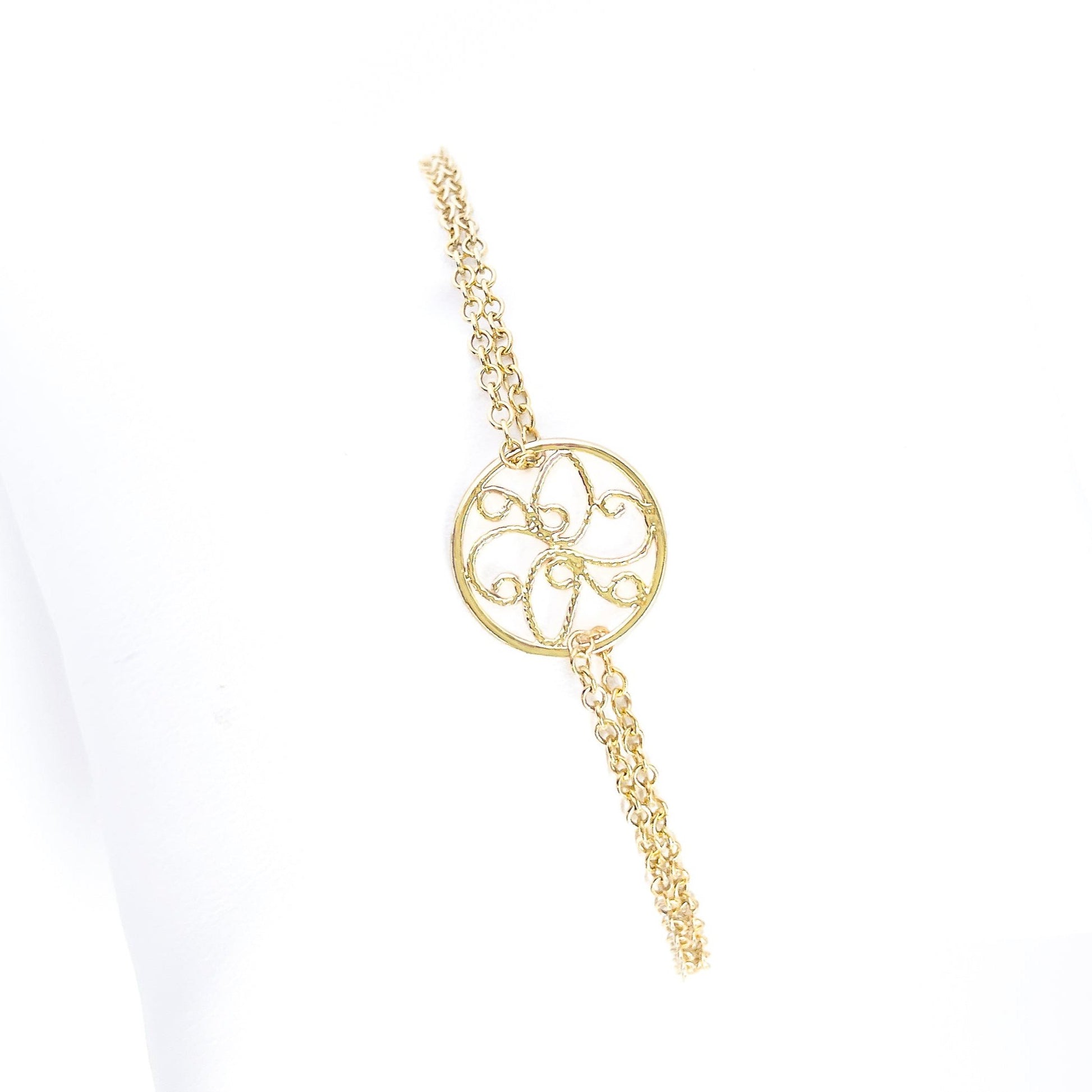 Gold Double Stranded Round Filigree Bracelet