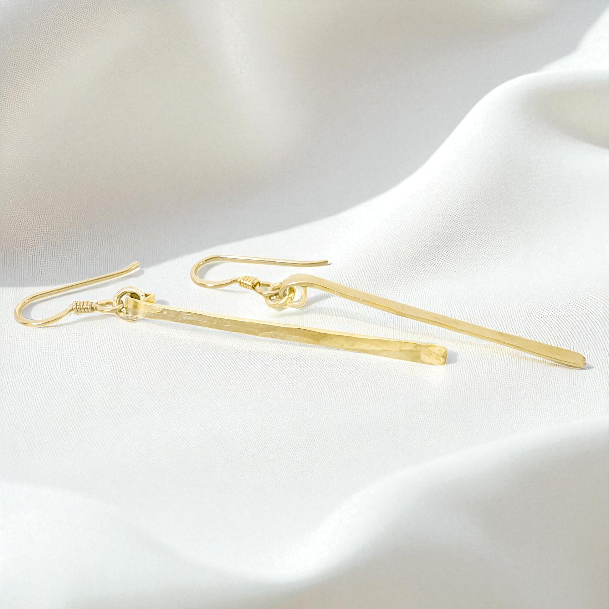 Gold Petite Hammered Bar Earrings