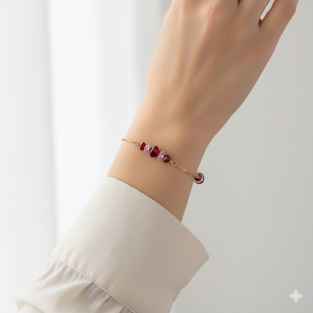 This bracelet is so lovely - full of sparkle and class! Clusters of red and clear Swarovski crystals are wire-wrapped to the chain for a clean and simple look.